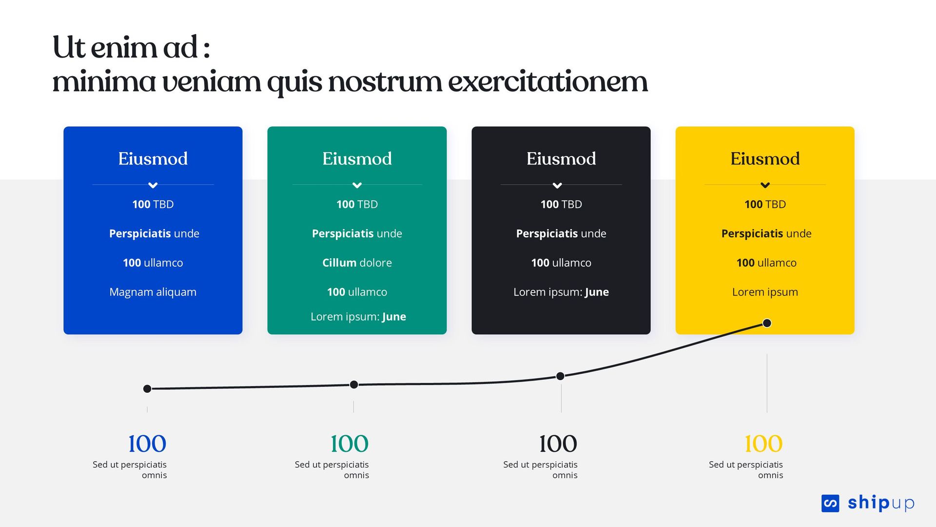 Habituée à cet exercice, notre agence PowerPoint a créé une présentation PowerPoint très visuelle en s'inspirant des codes graphiques de Shipup, et à la fois propre et carrée pour mettre en avant les chiffres, rien que les chiffres.