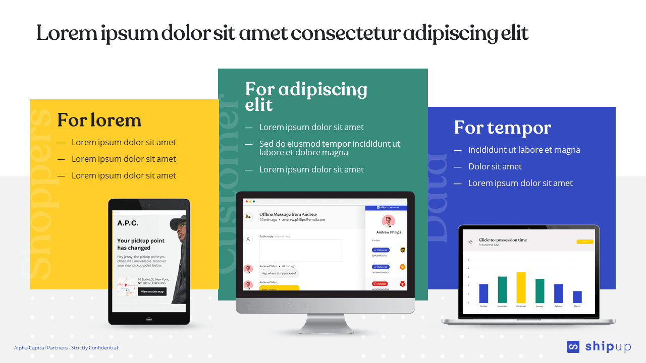 Le pitch deck sera ici un outil graphique parfait sur lequel baser vos explications orales. Attention toutefois à ne pas mettre trop de textes dans les slides. Un auditoire qui lit, c’est un auditoire qui n’écoute pas. D’ailleurs, on dit qu’une image vaut mieux que mille mots. En utilisant un savant mélange de phrases courtes et de visuels percutants, vous offrez à votre public une présentation claire. Ils peuvent ainsi retenir plus facilement les informations clés.
