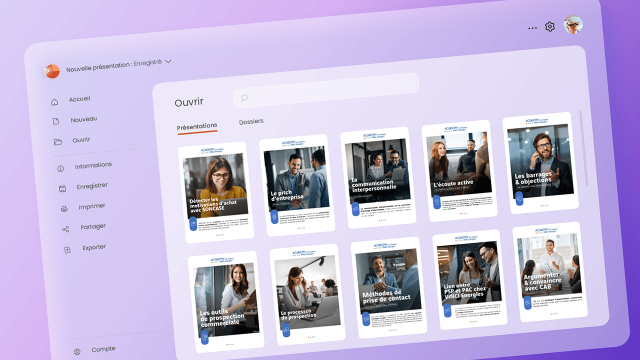 Un parcours de formation clair et logique soutient la motivation de vos collaborateurs et favorise leurs apprentissages. Grâce à PowerPoint, vous pouvez leur proposer un véritable catalogue de modules connectés entre eux, à diffuser en ligne ou consultables directement sur PowerPoint. En pratique, PowerPoint vous permet :